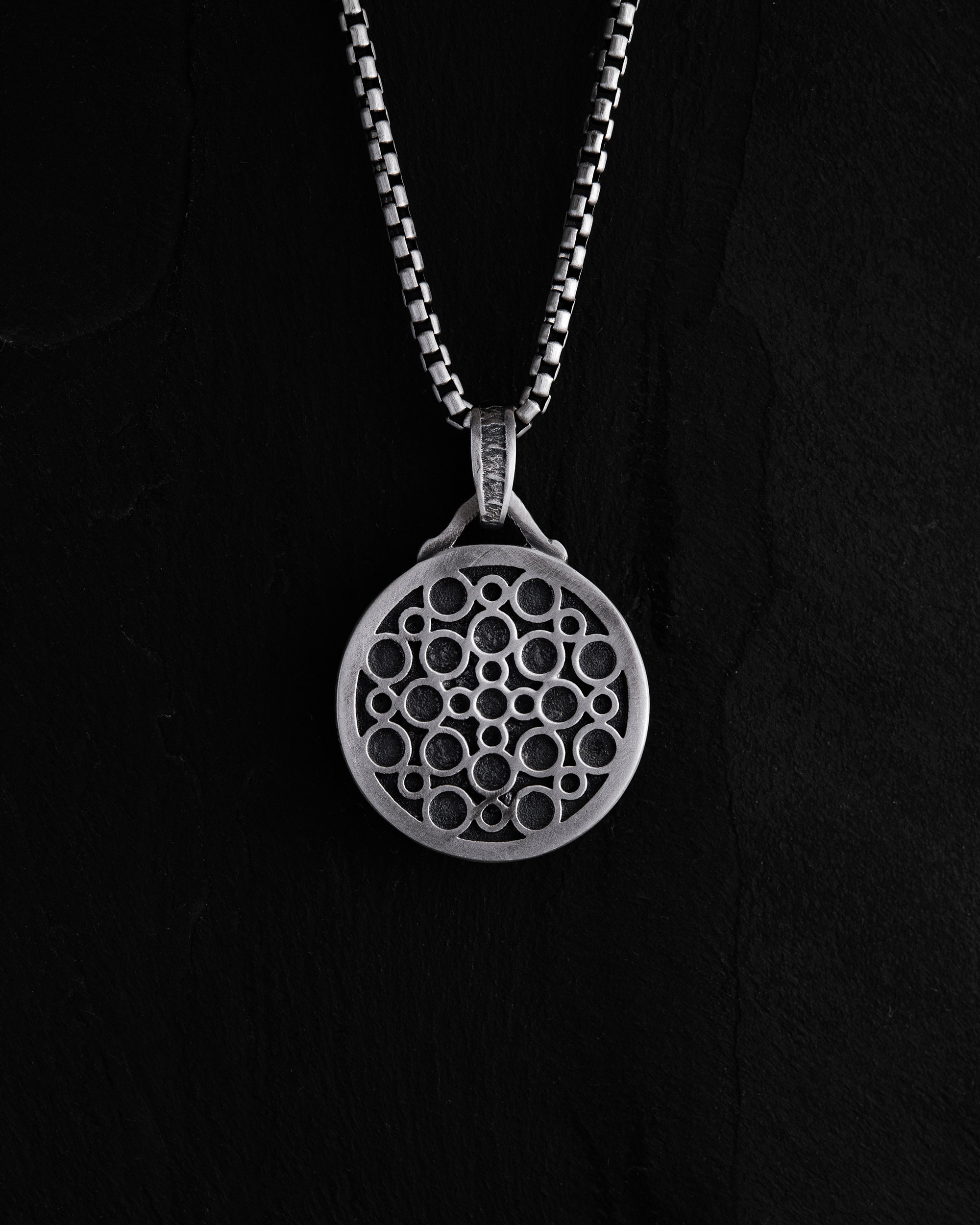 AETERNUM (aus dem Lateinischen — „Ewigkeit“) ist ein Silberanhänger, der die Unendlichkeit von Zeit, Erinnerung und Geist verkörpert.
