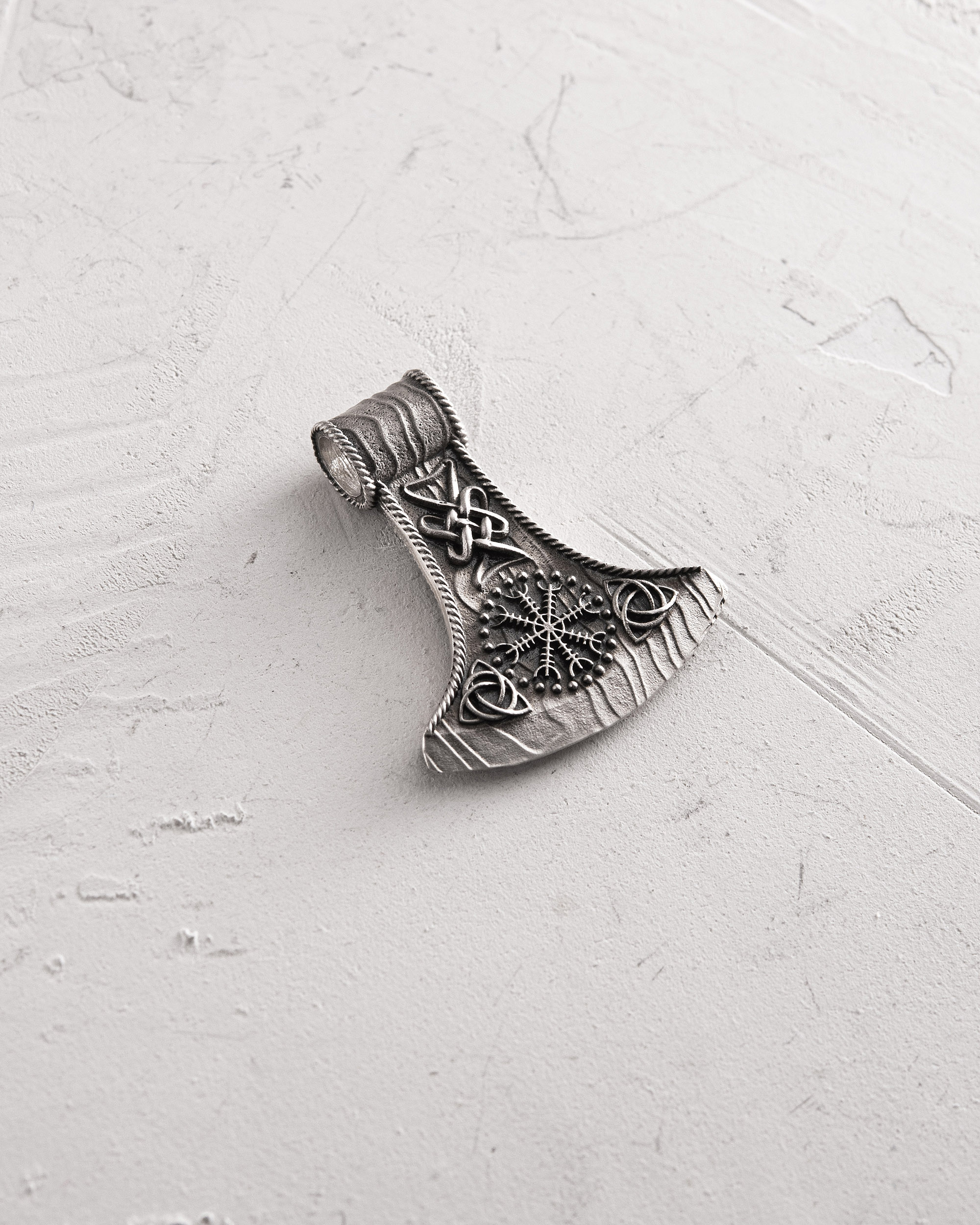 HELMET OF TERROR (Helm des Schreckens) — ein Silberanhänger, inspiriert von alter skandinavischer Symbolik und der Kraft des Kriegergeistes. Im Zentrum befindet sich das Zeichen Ægishjálmr — ein Schutzsymbol der Wikinger, dem der Legende nach Unbesiegbarkeit, Schutz und eine furchteinflößende Ausstrahlung vor Feinden verliehen wurden. Dieses Symbol steht für innere Tapferkeit, die Fähigkeit, selbst die härtesten Kämpfe zu überstehen, und für Vertrauen in die eigene Stärke. Der Anhänger HELMET OF TERROR ist ein Talisman für den Mann, der Entschlossenheit, Schutz und geistige Stärke sucht und dabei stets eine Erinnerung an die Macht seiner Vorfahren bei sich trägt.