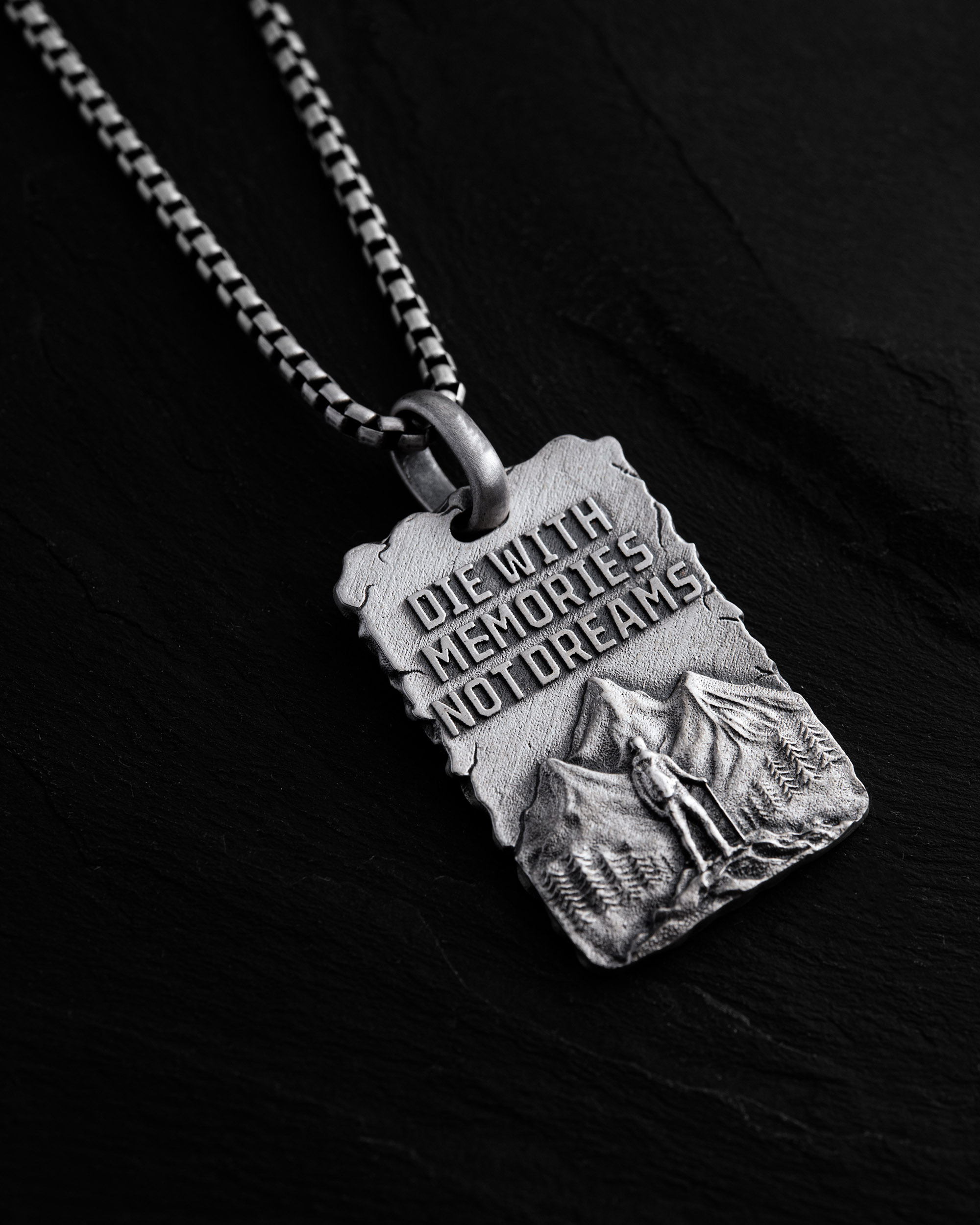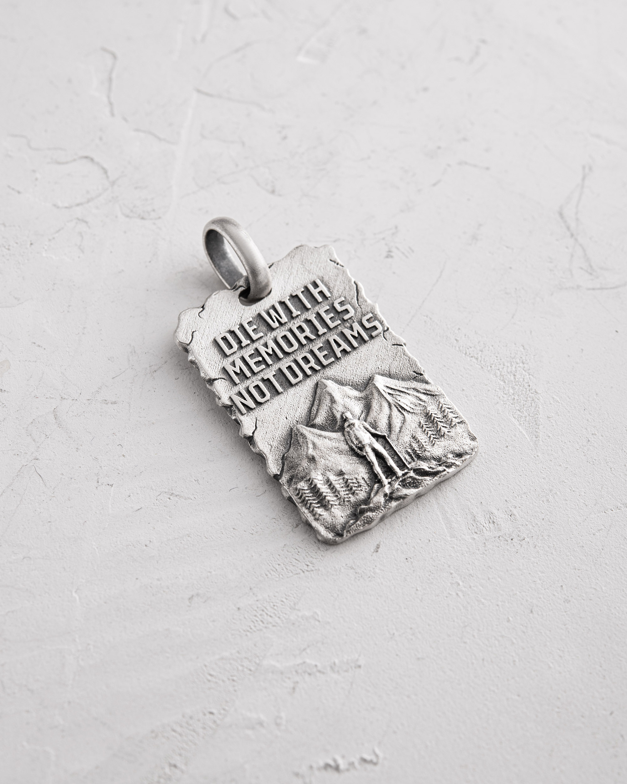 BEYOND DREAMS (aus dem Englischen — „jenseits der Träume“) ist ein Silberanhänger mit der Gravur “DIE WITH MEMORIES, NOT DREAMS” — „Stirb mit Erinnerungen, nicht mit Träumen.“
