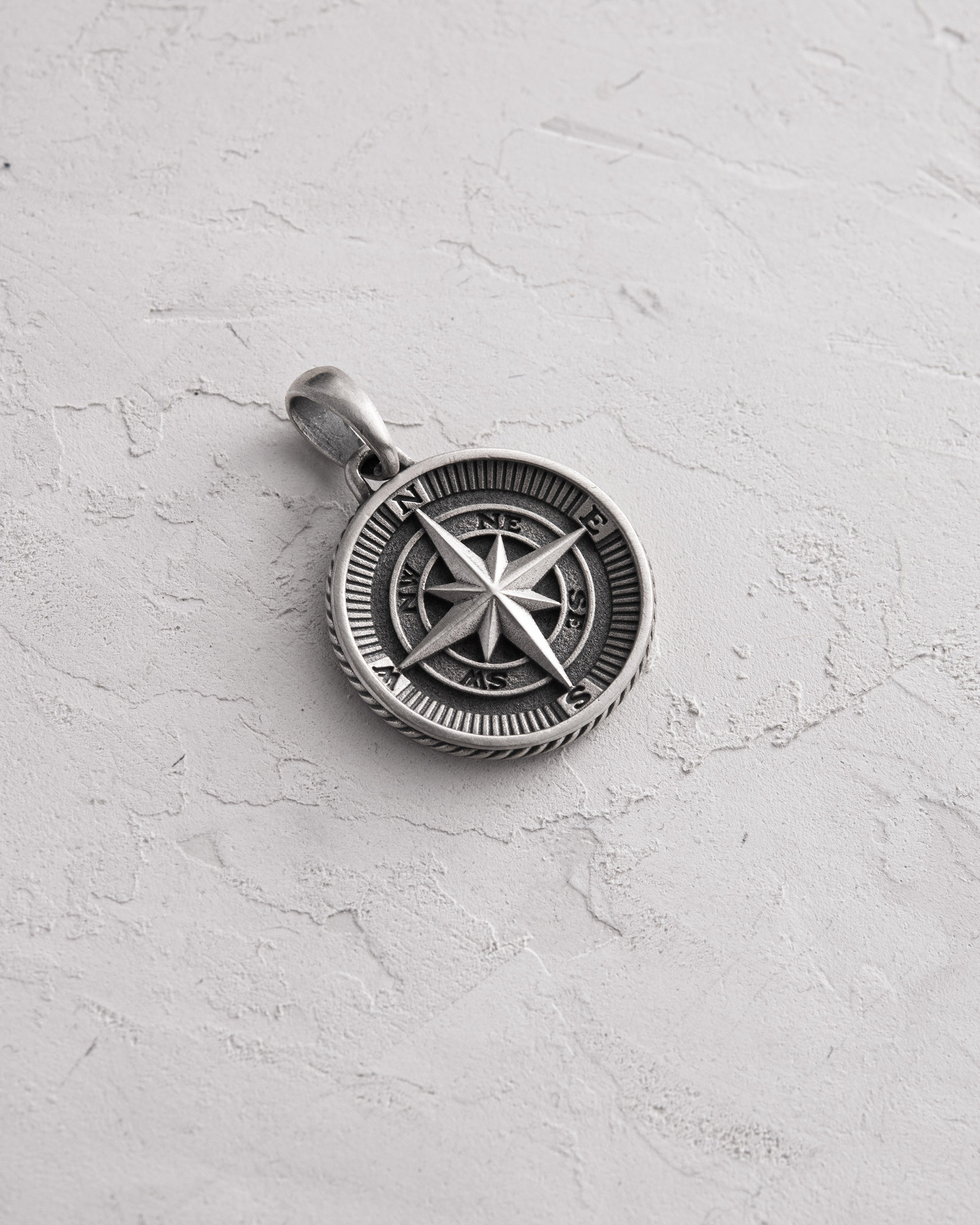 Der Silberanhänger KOMPASS POLARSTERN ist ein Symbol für die Navigation und das Konstante im Leben. Das Schmuckstück vereint das Abbild eines Kompasses, welcher die Richtung zeigt, mit dem des Polarsterns, der immer eine Konstante am Nachthimmel darstellt. Der Kompass symbolisiert die Suche nach dem richtigen weg im Leben, während der Polarstern für die Hingabe zu persönlichen Zielen und Idealen repräsentiert, trotz allen Widrigkeiten. Gemeinsam erinnern sie uns and die Wichtigkeit, eine Richtung und Integrität im Leben zu haben, was einem selbst in schwierigsten Zeiten auf den Richtigen weg hilft. Das Tragen des KOMPASS POLARSTERN Anhängers, kann einem als tägliche Erinnerung an persönliche Ziele dienen und den Träger motivieren, selbstbewusst Entscheidungen zu treffen und stets dem selbst gewählten Pfad zu folgen.
