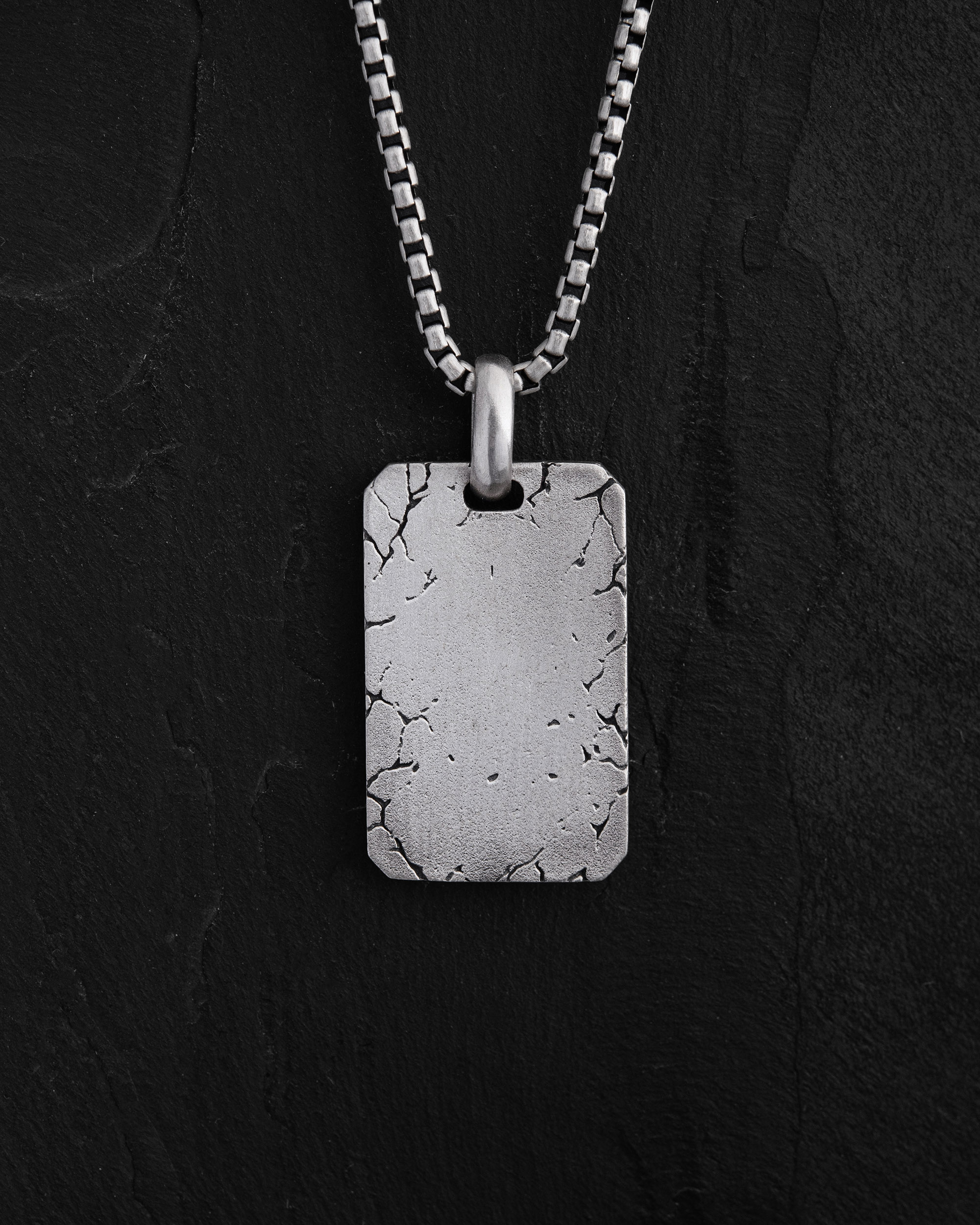 Seine Oberfläche erinnert an rissigen Stein — ein natürliches Muster, das nicht durch Schwäche entsteht, sondern durch Zeit, Gewicht und die Kraft der Elemente. In diesen Rissen liegt eine Geschichte der Ausdauer. Der Anhänger symbolisiert einen Menschen, der keine Angst vor Veränderung, Schicksalsschlägen oder seinem eigenen Weg hat, denn wahre Stärke zeigt sich nicht in Perfektion, sondern in der Fähigkeit, nach dem Sturm festzustehen.
