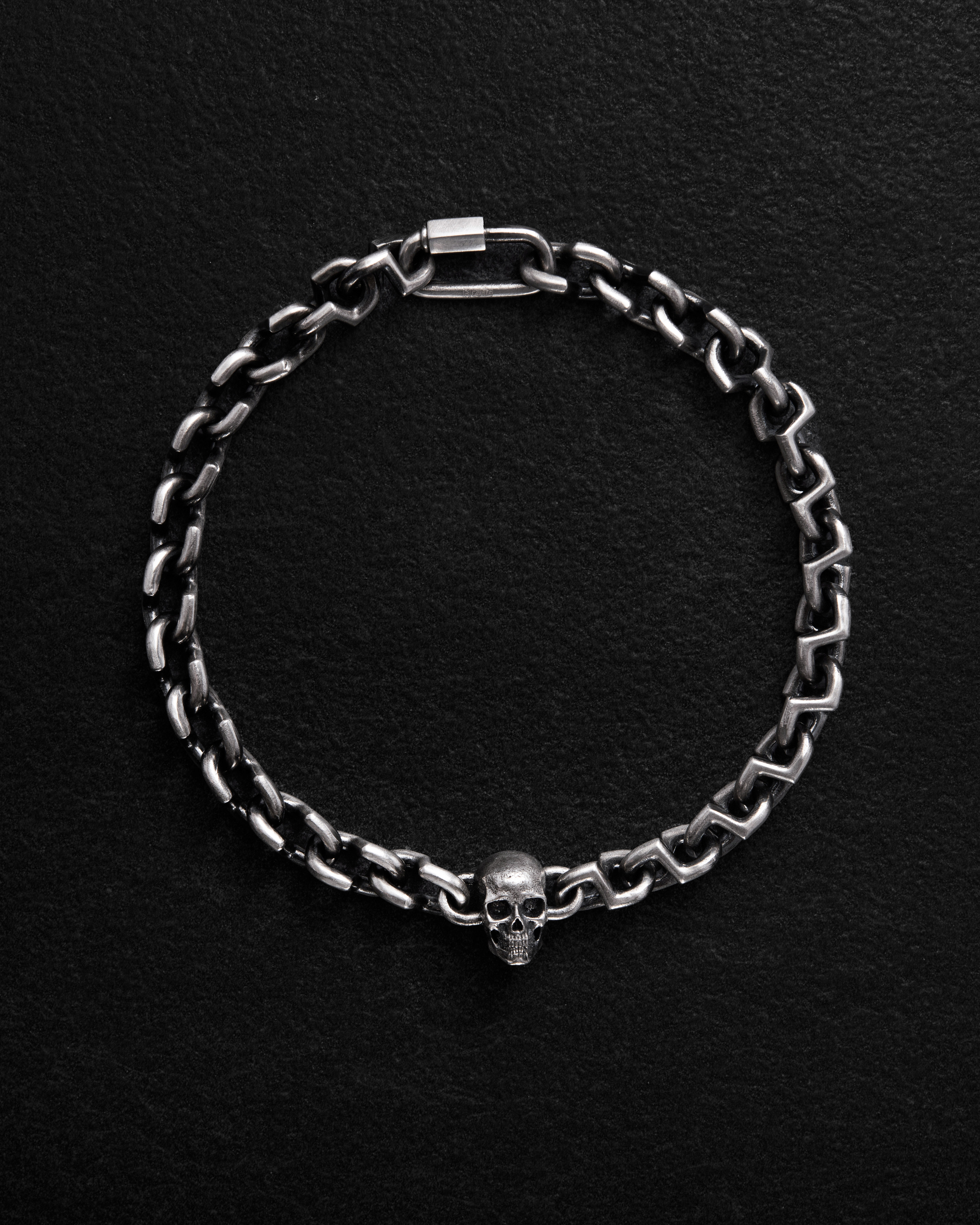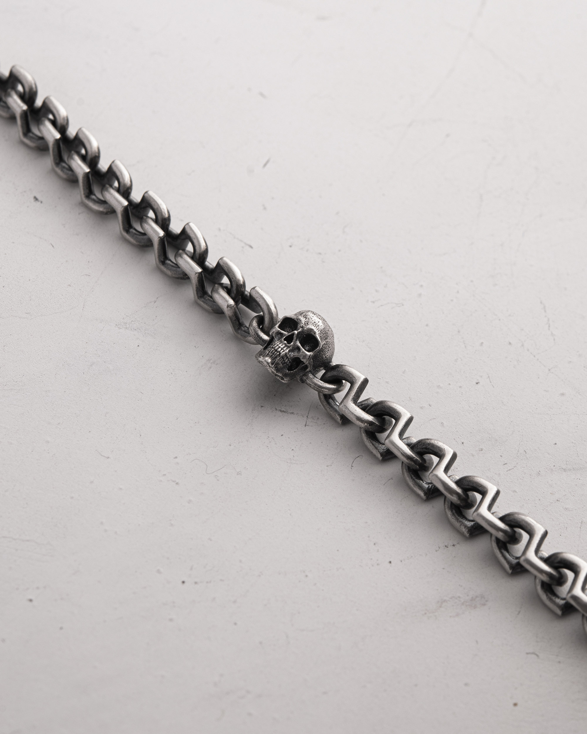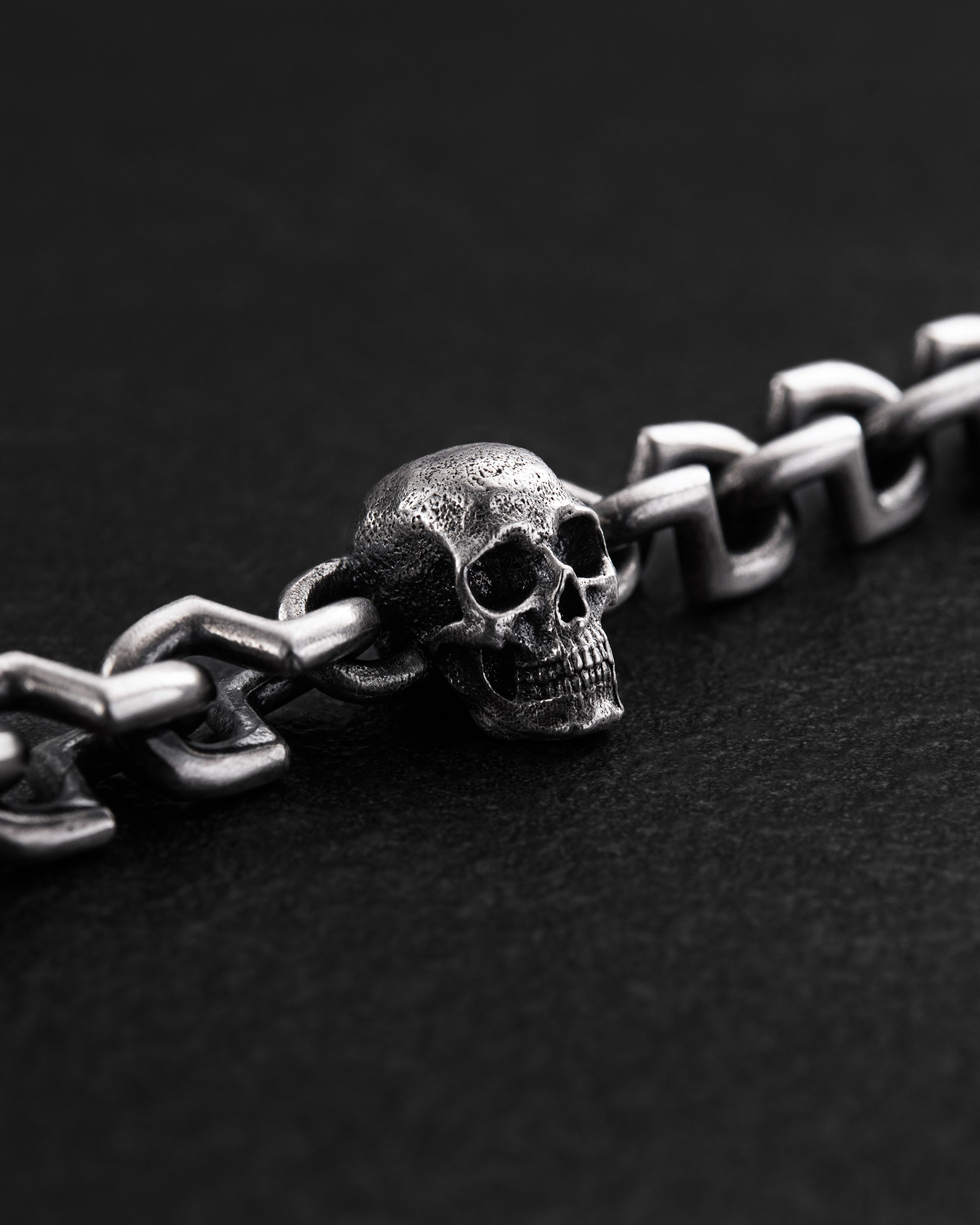 Das Silberarmband SKULL ist ein Symbol für Bewusstsein, innere Stärke und die Akzeptanz des Lebens in seiner ganzen Fülle. Der Schädel im Zentrum ist nicht nur ein Zeichen des Todes, sondern eine Erinnerung an den Wert jedes Augenblicks – daran, dass Zeit die kostbarste Ressource ist, die man nicht zurückholen kann. Das Armband SKULL verkörpert den Mut, man selbst zu sein, seinen eigenen Weg ohne Angst und Illusionen zu gehen. Es erinnert daran: Das Leben ist kurz – lebe es vollständig, würdevoll und bewusst.
