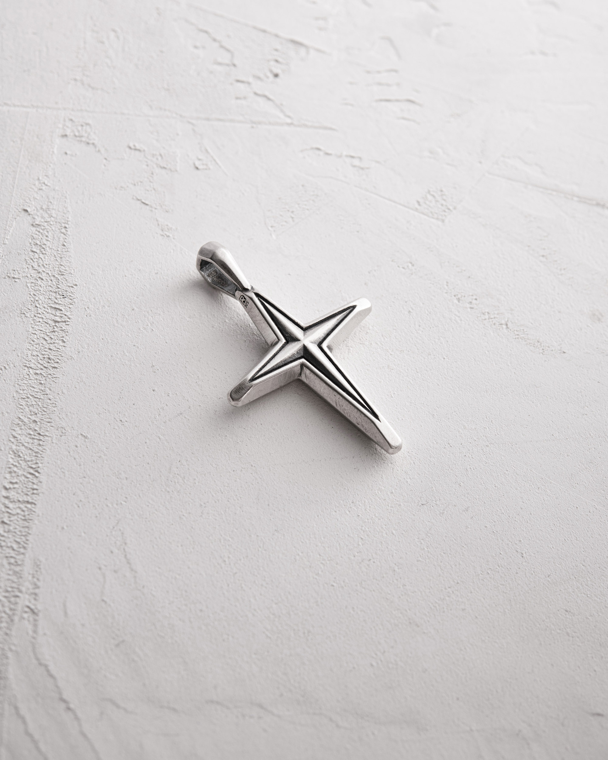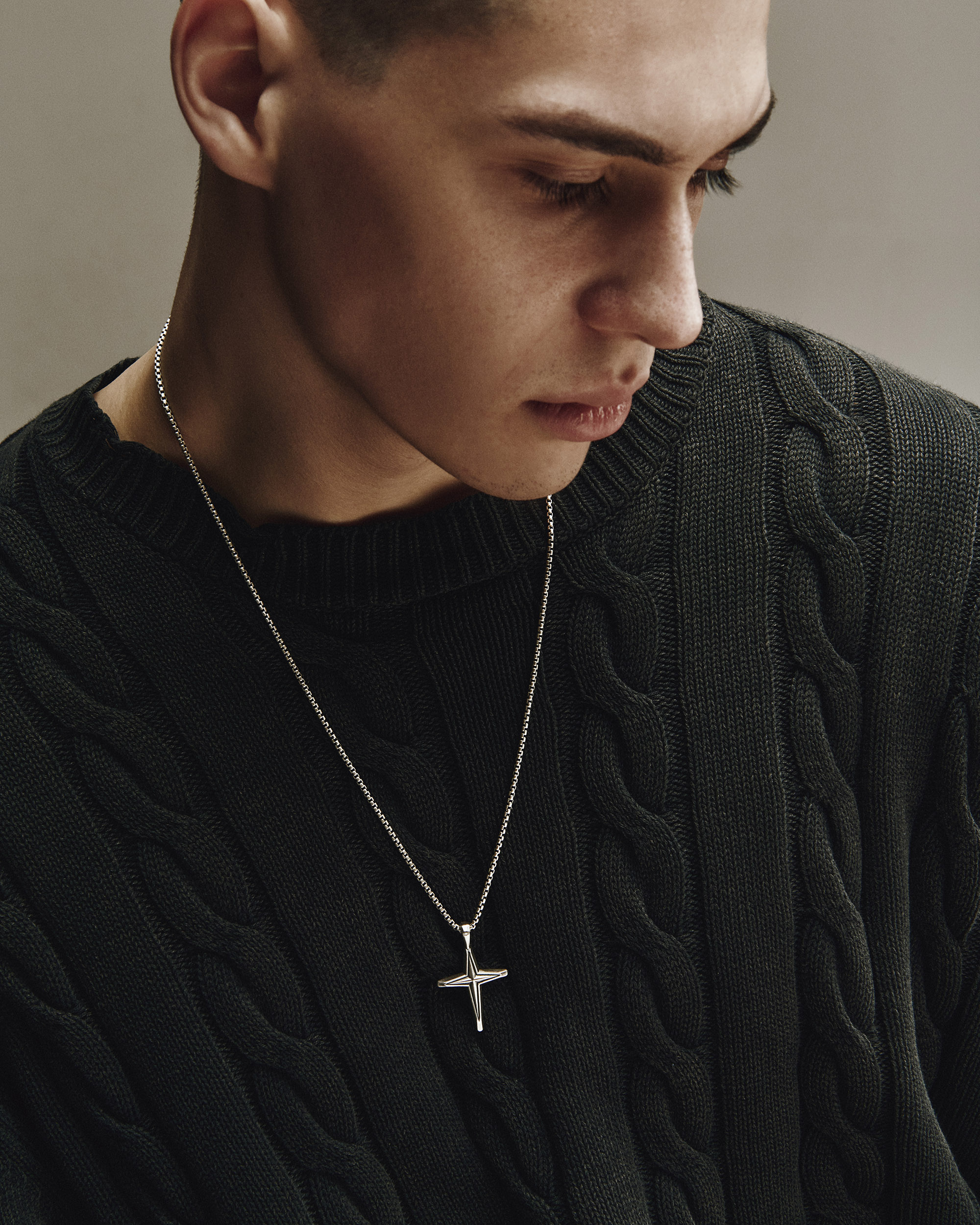 CHEMIN (Der Weg) ist ein Silberkreuz im modernen, geometrischen Stil, in dem klare Linien und ausgerichtete Formen ein Gefühl von Vorwärtsbewegung erzeugen. Der Name Chemin, was auf Französisch „Weg“ bedeutet, spiegelt die Idee des persönlichen Lebenswegs wider, auf dem der Glaube zum Wegweiser und inneren Kompass wird. Das Design des Anhängers symbolisiert Richtung, geistige Entwicklung und die Kraft, sich trotz Herausforderungen selbst treu zu bleiben. CHEMIN ist ein Schmuckstück für diejenigen, die im Glauben Inspiration finden und im Kreuz ein Zeichen ihres Ziels und ihrer inneren Stärke sehen.